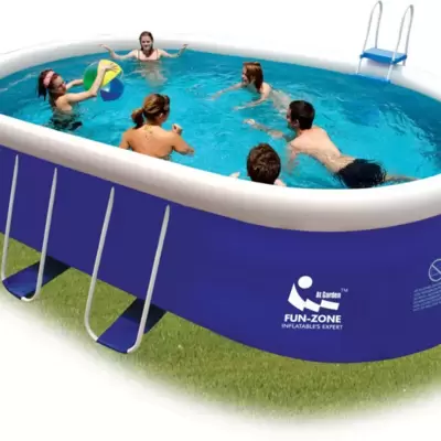 Ovalni nadzemni bazen sa metalnom konstrukcijom. Dužina 610 cm, dubina 122 cm, širina 360 cm. U kompletu sa filterskom pumpom, podlogom, pokrivkom,...