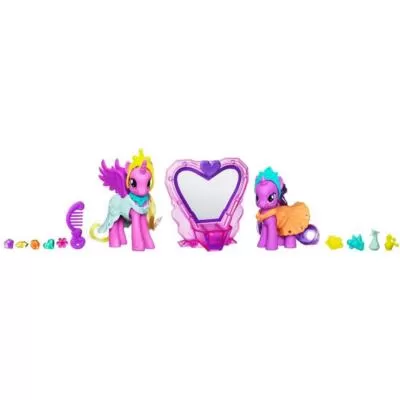 U pakovanju: figurice Twilight Sparkle i Princeza Cadance, toaletni stočić sa ogledalom, haljine, tijare, nakit, parfemi...