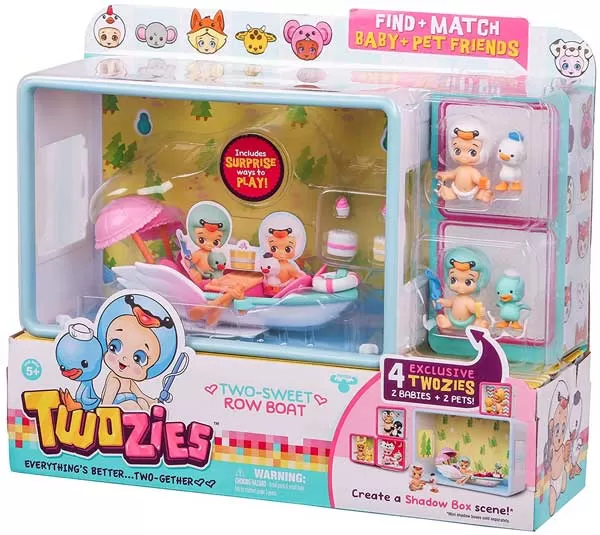 Pakovanje sadrži: Čamac, 2 figure bebe, 2 figure ljubimca, 1 suncobran, figure poslastica i karticu za kolekcionare