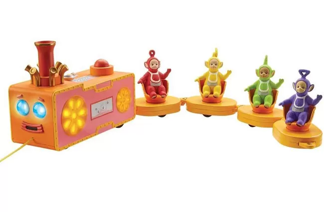 Figure Teletabisa se okreću oko svoje ose dok se voz kreće