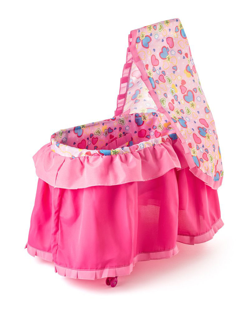 U WOODY kolevci krevetu za lutke sve tvoje bebe lutke će se lako uspavati i sanjati slatke snove pod ružičastim baldahinom. Kolevka ima i točkiće, pa kad zaspi možeš da joj lako nađeš mesto. 61x32x85cm.