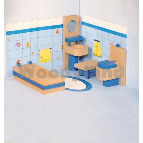 Samo za tvoje lutkice i njihovu novu kućicu: nameštaj za dečiju sobu! 1 kada, 1 lavabo sa ogledalom, 1stoličica, 1 wc šolja. Sada će i tvoje lutkice biti čiste i uredne!