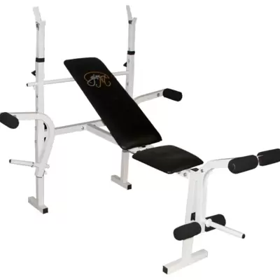 Kombinovana benč klupa sa dodatkom za vežbe bicepsa i nožnih mišića. Nosivost ove klupe je 100kg.