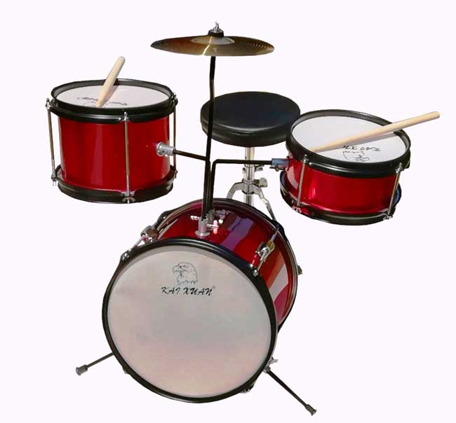 Pravi komplet bubnjeva čija je veličina prilagođena deci do 6 godina starosti. U kompletu su i bubnjarska stolica, pedala za bas bubanj i bubnjarske...