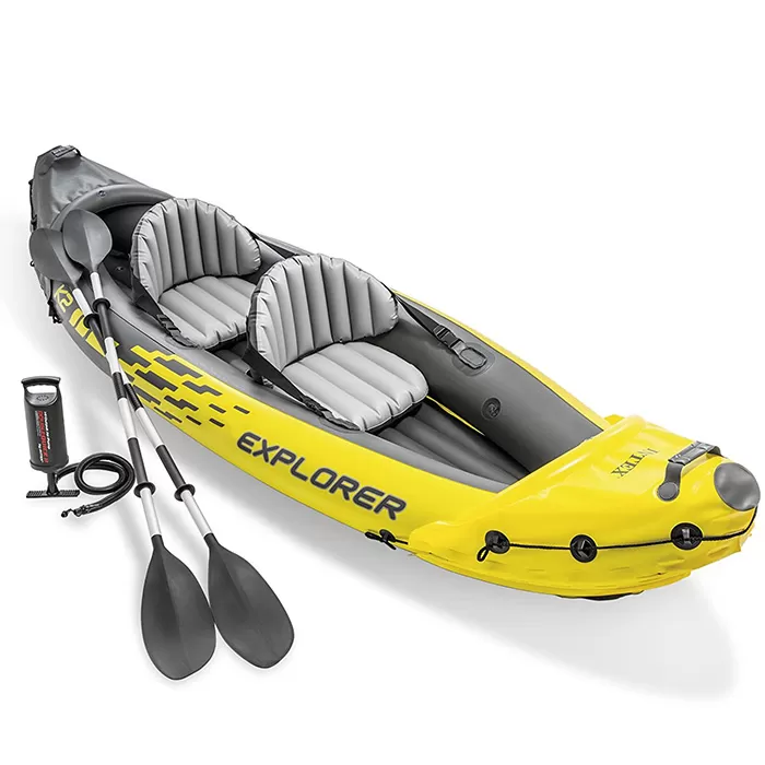 Kajak dvosed dimenzija 312.42 x 91.44 x 50.8 cm. Paket sadrži i vesla dužine 244 cm, ručnu pumpu za naduvavanje, sedišta i set za popravke. Odlične propulzivne i kormilarske sposobnosti za ovaj tip čamca...