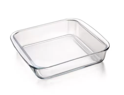 Vatrostalna staklena činija kvadratnog oblika sa rukohvatima za pripremanje hrane u rerni