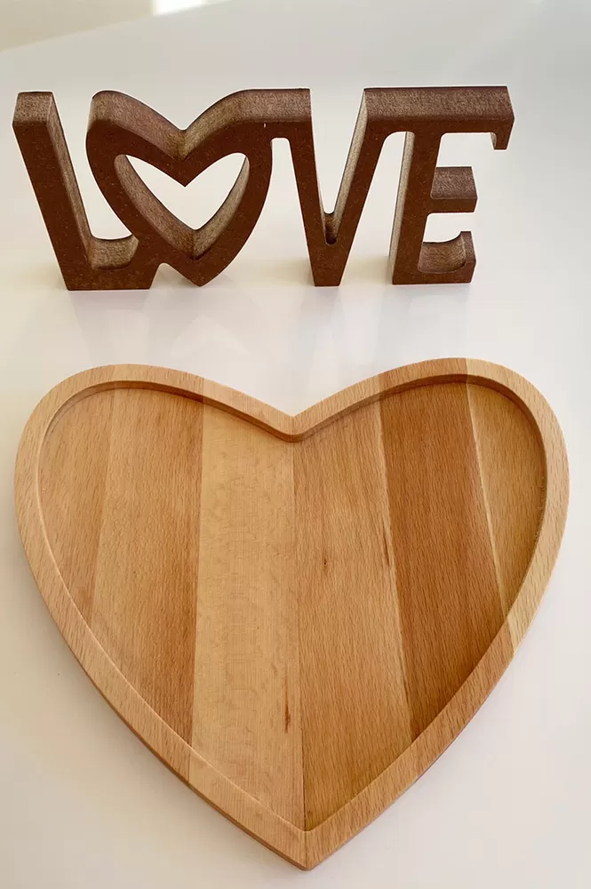 Činija za posluživanje od bukve u obliku srca. Dimenzije: 28x25cm. Materijal: drvo bukve. Dekorativno za posluživanje
