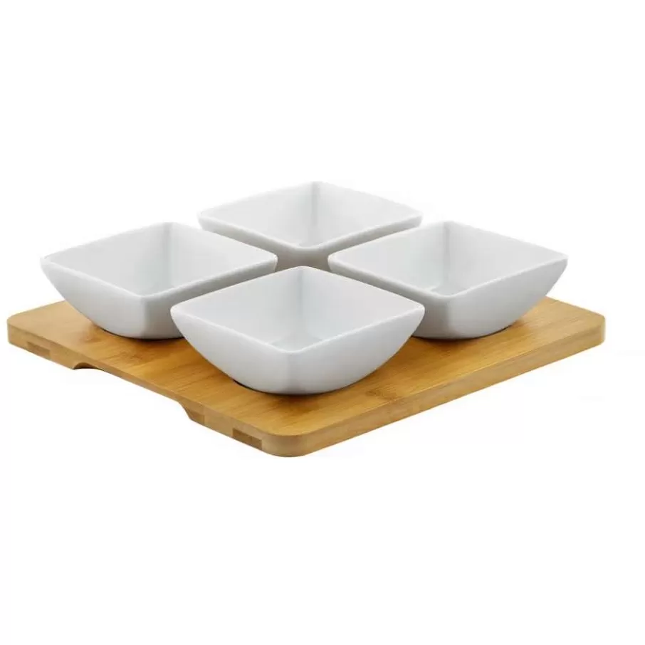 Dajar Porcelanski set 4 četvrtaste činije sa daskom od bambusa DJ45577