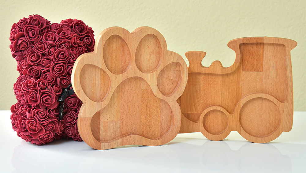 Daska od drveta bukve u obliku voza. Dimenzije: 25x20cm. Materijal: drvo bukve.