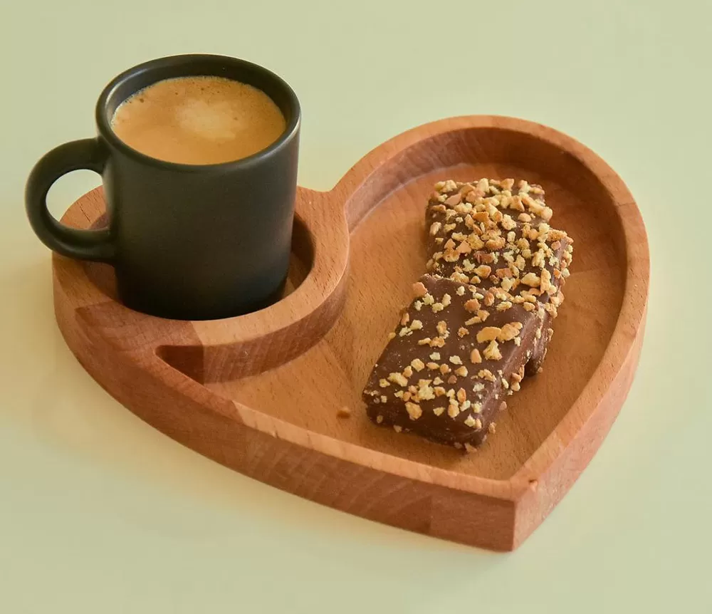Daska za posluživanje u obliku srca. Dimenzije: 19x19cm. Materijal: drvo bukve. Dekorativno za posluživanje