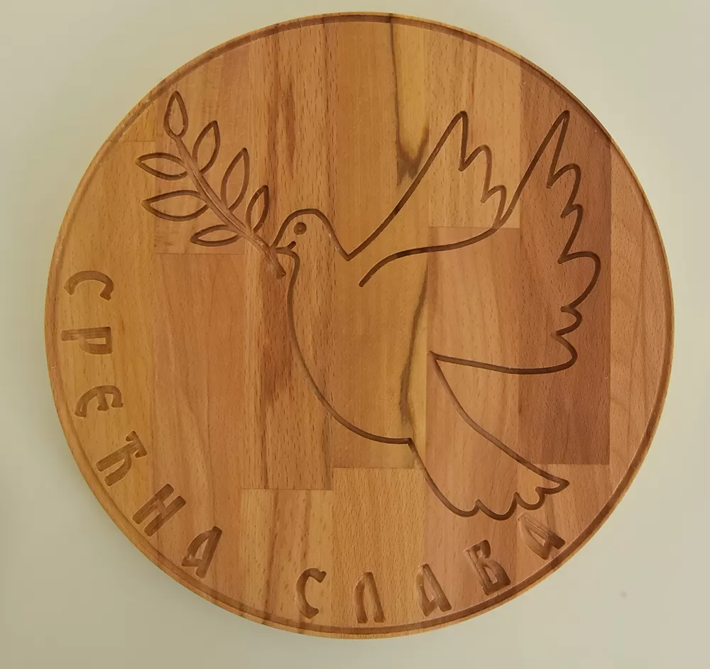 Okrugla daska za sečenje sa golubom
