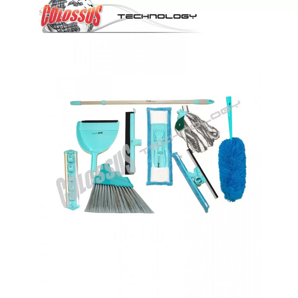 Colossus CSS-4114 multifunkcionalni set za čišćenje sa podesivom drškom i raznovrsnim dodacima (metla, mop, sunđerasti deo). Idealno rešenje za efikasno i lako čišćenje u domu!