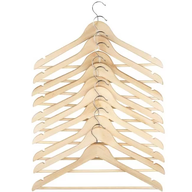 Komplet od 10 vešalica napravljenih od drveta, u natur boji. Dimenzije vešalica su 22 x 42cm.