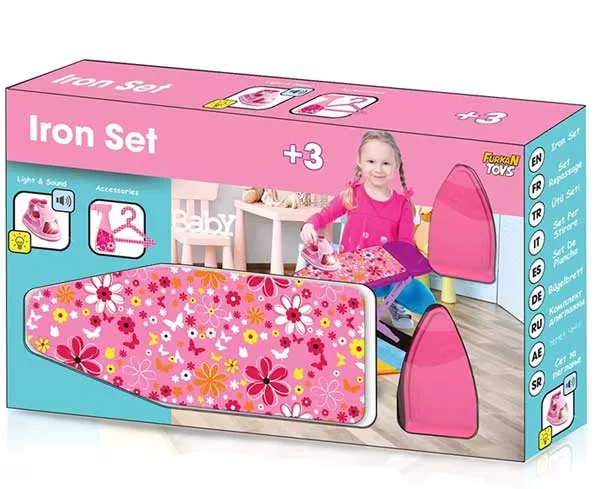 Set: daska za peglanje, pegla, posudica za fajtanje i ofinger