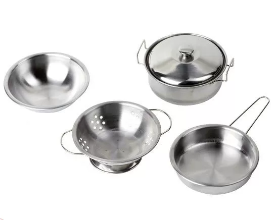 Kuvanje je jedna od omiljenih dečjih igara imitacije. Ovo je set posuda od inoksa sa kojim se deca mogu dugo igrati. Sastoji se od dve šerpe sa poklopcima, tiganja i cediljke.