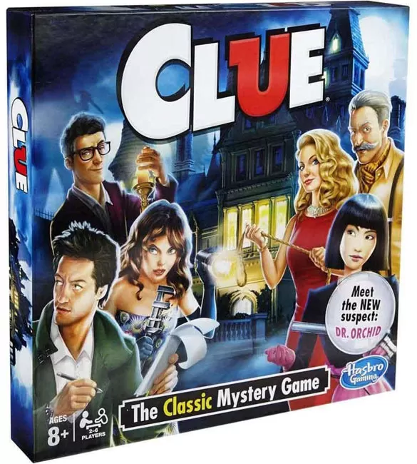 Sadržaj: 1 dvostrana tabla za igru, 6 figura, 6 mini oružja, 30 kartica likova, oružja, soba, dokaza, 2 kockice i uputstvo