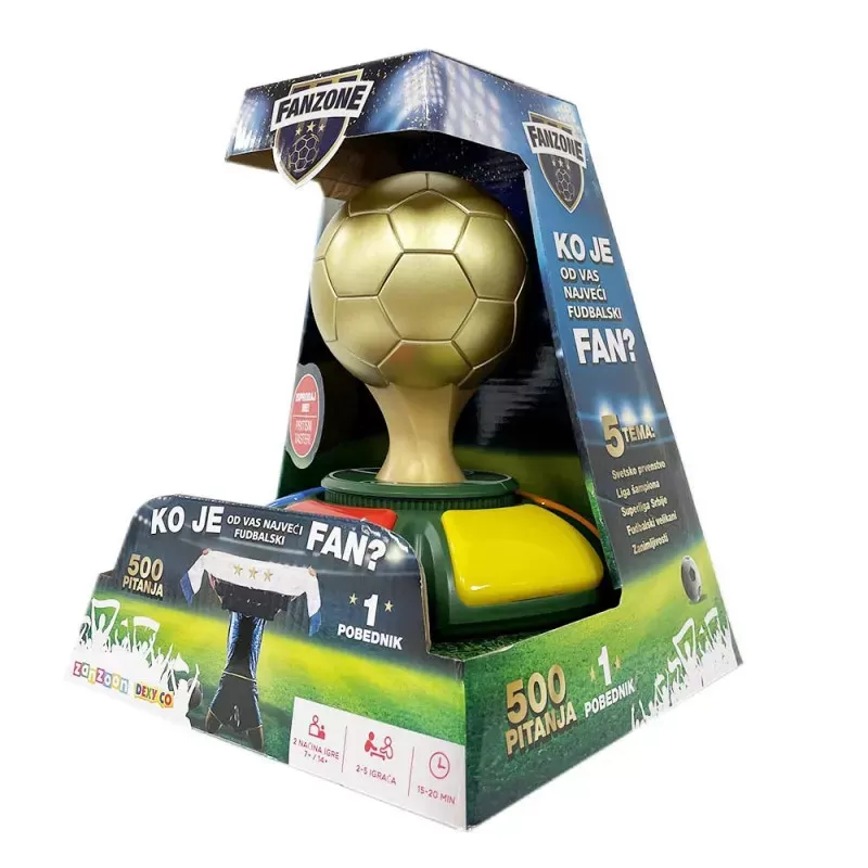 Set sadrži: Interaktivnu fudbalsku loptu sa 500 pitanja i odgovora na temu fudbala