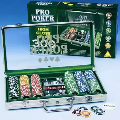 Piatnik Pro Poker Set čine 300 žetona u 5 boja, 2 špila karata, 5 kasino kockica i kofer. Masa žetona 14 grama...