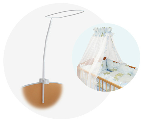 Ukrasite krevetac Vaše princeze ili princa baldahinom! Ovaj nosač za baldahin odgovara svim tipovima dečjih krevetaca, a montira se poput stege.