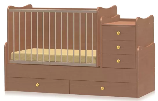 Transformiše se u trodelni set za stariju decu (klasičan krevet, komodu i radni sto) ili trodelni set za dvoje dece (krevet za starije dete, krevetac za bebu i komodu) - pogledati video prezentaciju u okviru opisa proizvoda