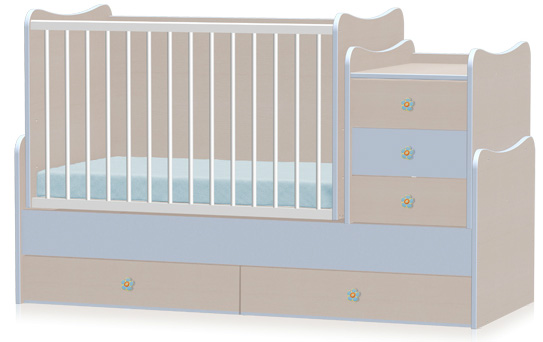 Transformiše se u trodelni set za stariju decu (klasičan krevet, komodu i radni sto) ili trodelni set za dvoje dece (krevet za starije dete, krevetac za bebu i komodu) - pogledati video prezentaciju u okviru opisa proizvoda