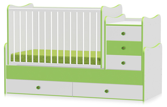 Transformiše se u trodelni set za stariju decu (klasičan krevet, komodu i radni sto) ili trodelni set za dvoje dece (krevet za starije dete, krevetac za bebu i komodu) - pogledati video prezentaciju u okviru opisa proizvoda