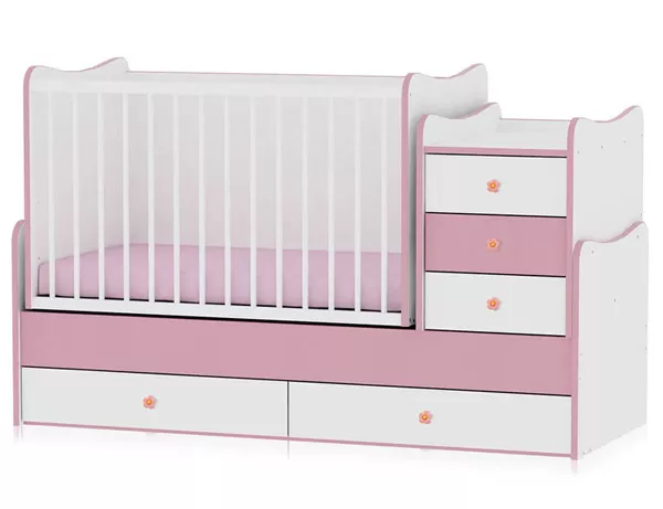 Transformiše se u trodelni set za stariju decu (klasičan krevet, komodu i radni sto) ili trodelni set za dvoje dece (krevet za starije dete, krevetac za bebu i komodu) - pogledati video prezentaciju u okviru opisa proizvoda