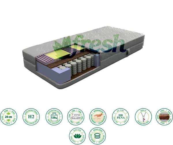 Dušek srednje tvrdoće dimenzija 190x160x28cm. Ima bočna ojačanja i džepno jezgro sa čeličnim oprugama. Preporučuje se za osobe težine do 120kg. Posebna navlaka se skida radi pranja.