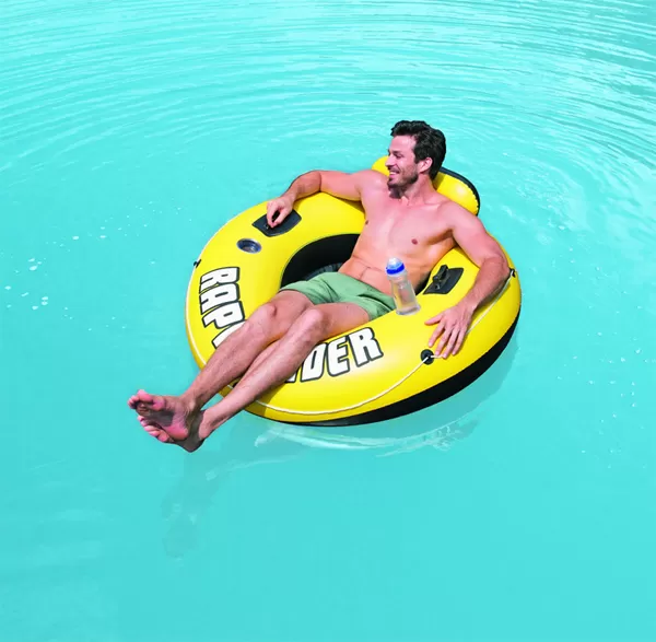 Bestway okrugli dušek za vodu Rapid Rider uneće radost u momentima zasluženog odmora i relaksacije. Prečnik naduvanog proizvoda je 122 cm.
