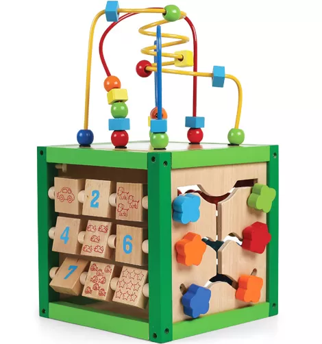 Activity kocka je podeljena na više celina. Svaka celina je poseban stimulans i obezbeđuje razne aktivnosti - put za perle, računaljka...