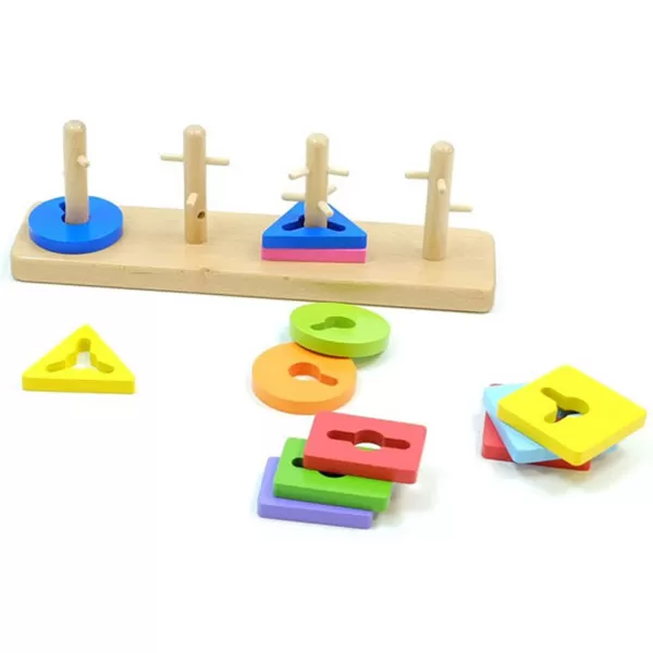 Različiti prepreke na svakom stubiću nateraće decu da razmišljaju o tome kako da različite oblike drvenih pločica postave i sklone.