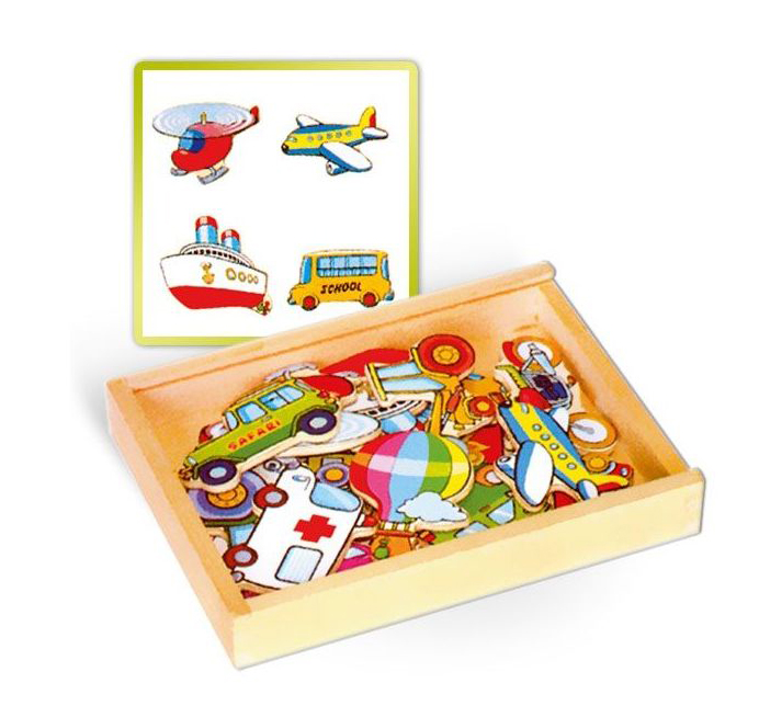 Drvene figure sa magnetima pogodne za upoznavanje sa određenim saobraćajnim elementima i za početno učenje brojanja.