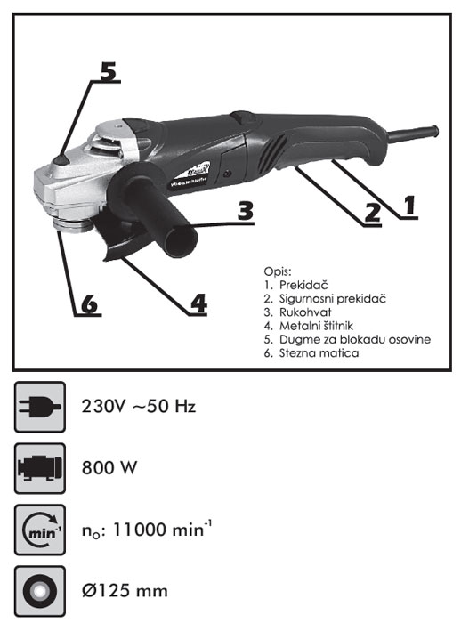 Namenjena za sečenje, brušenje, grubu obradu i poliranje metala, kamena i keramike uz primenu odgovarajućeg pribora.