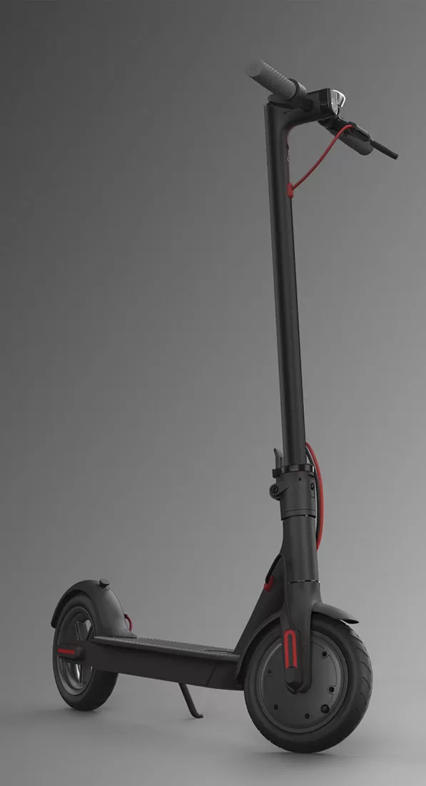 Trotinet se uključuje samo jednim pritiskom na dugme, a tu su i crveni naglašeni detalji koji mu daju moderan i lepši izgled