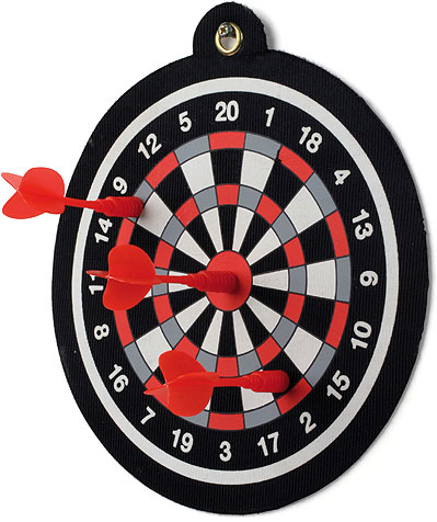 Sa jedne strane je klasična tabla za pikado dok je sa druge tabla za strelce - vidi slike