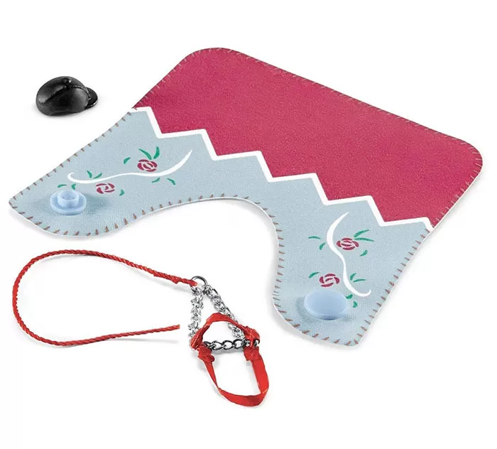 Ćebe koje odgovara svim Schleich konjima, lepo izgleda, a i štiti od hladnoće i insekata. Tu su još uzde za konja i kaciga za jahača.