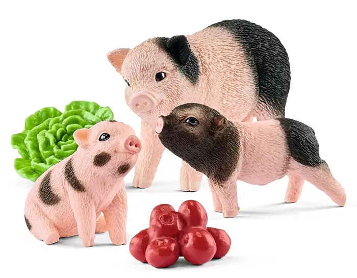 U pakovanju: 1 x mini prase - majka, 2 x mini prase - mladunče, 1 x jabuke, 1 x zelena salata