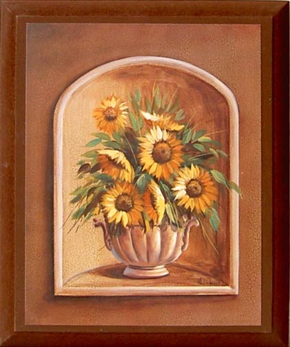 <b>Cvetni motiv suncokreta živih boja dimenzije 50x70 cm u drvenom ramu sa staklom.</b>