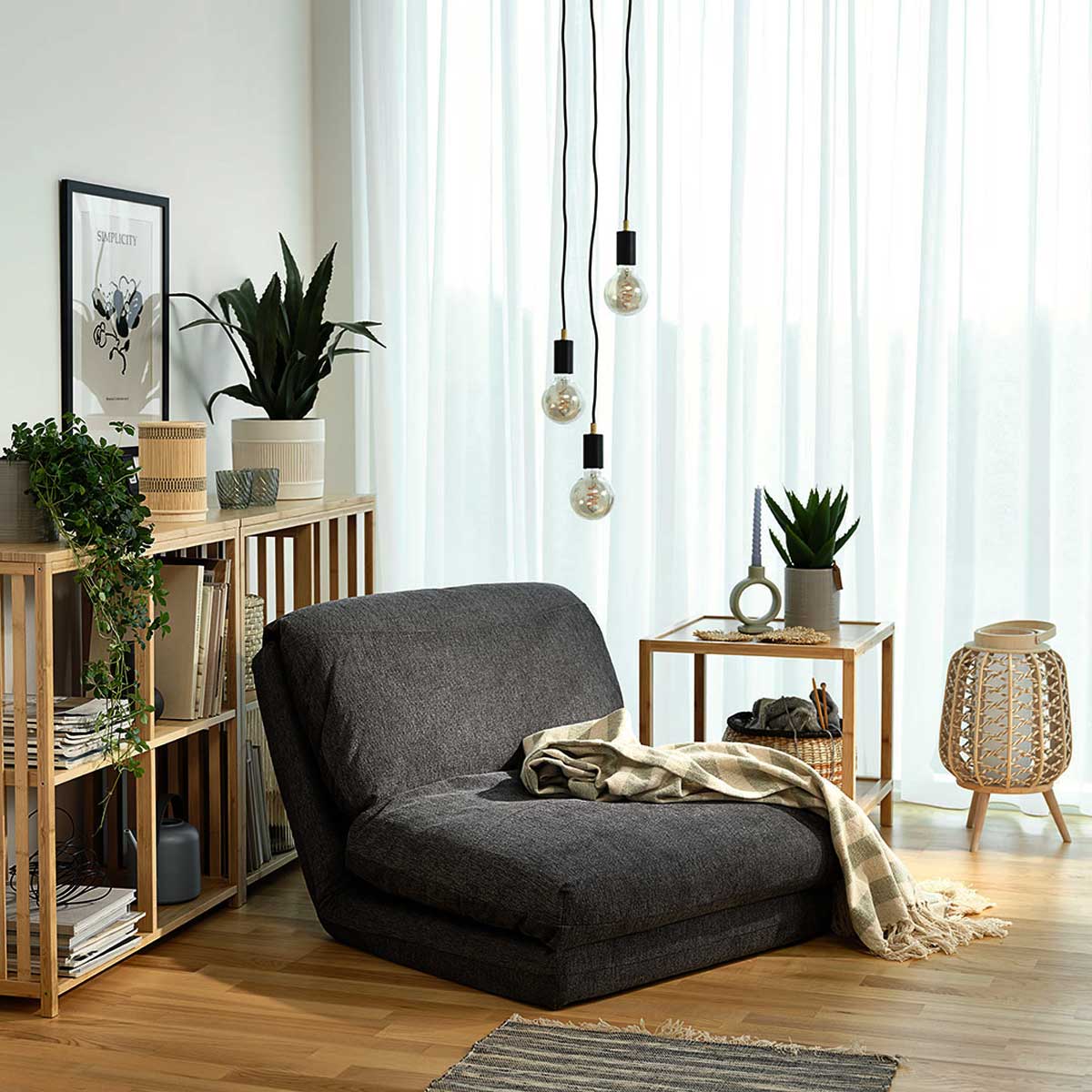 Fotelja na razvlačenje je pametno rešenje za male prostore i dečje sobe. Danju služi kao udobna fotelja za sedenje, čitanje ili igru, a jednostavnim rasklapanjem pretvara se u praktičan ležaj dimenzija 73x220 cm. Presvučena je sivom tkaninom.