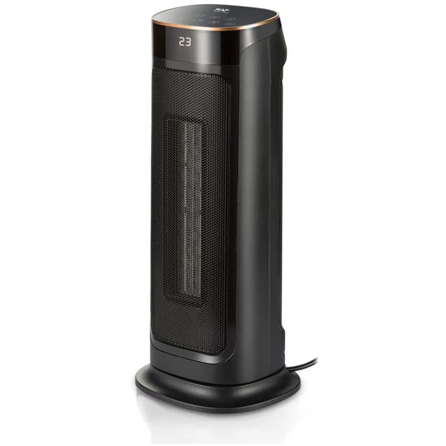 RAF R.1402 STUBNA KERAMIČKA ROTIRAJUĆA GREJALICA SA DALJINSKIM I TAJMEROM 2000W. Snaga: 2000W. Daljinski upravljač. Raspon podešavanja željene temperature: 5°C – 30°C. Tajmer: 24 sata. Zagrevanje prostorija površine do ok