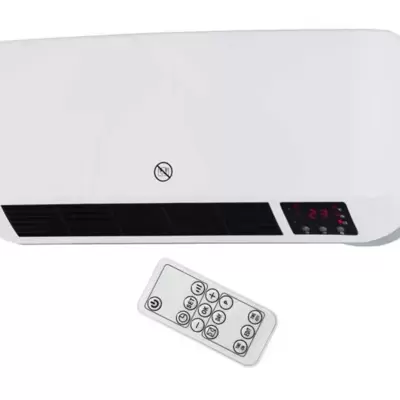 Zidna kupatilska grejalica snage 2kW, sa keramičkim grejačem, dva stepena grejanja i daljinskim upravljačem.