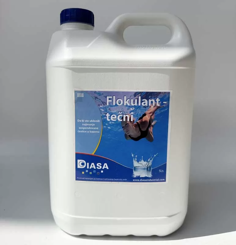 Preparat za uklanjanje nečistoća iz vode u bazenu za plivanje. Doziranje: 200-400ml na 10m3 vode. Količina: 5 lit.