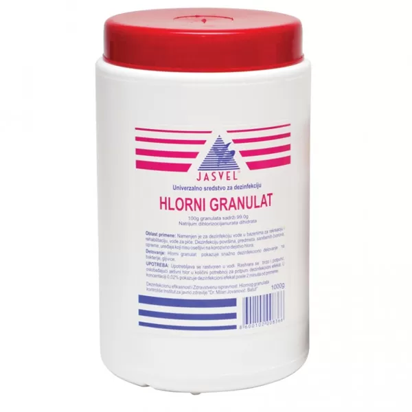 100g granulata sadrži 99.0g Natrijum dihlorizocijanurata dihidrata