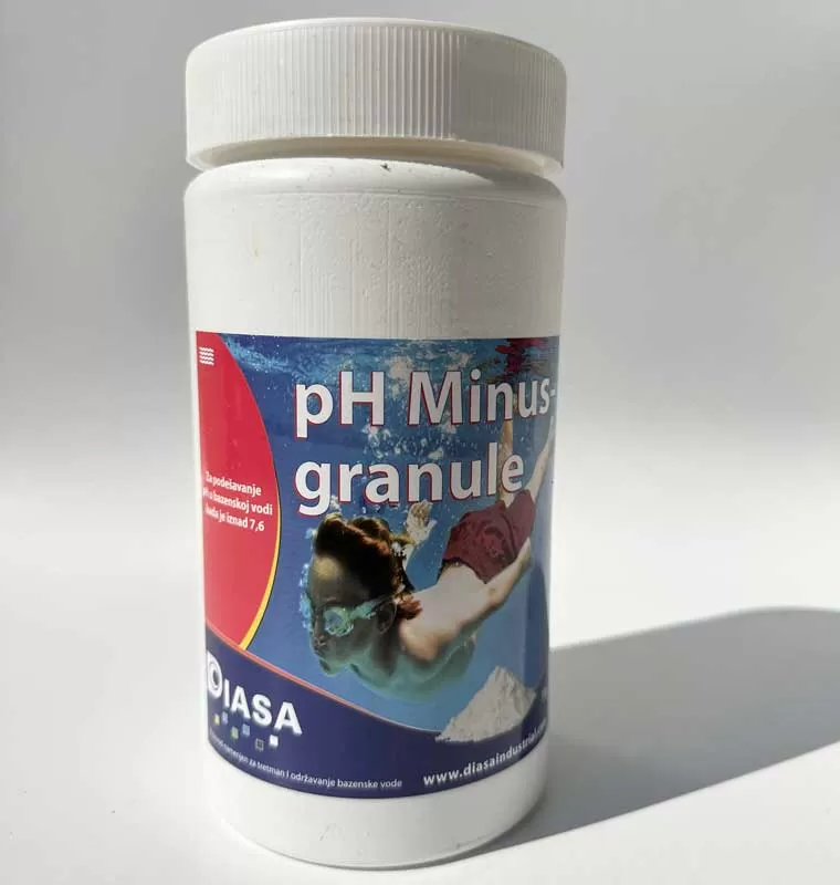Preparat za smanjenje nivoa pH vrednosti vode u bazenu za plivanje, kada je to neophodno. Doziranje: 150g na 10m3 za smanjenje pH za 0,2. Količina: 1kg.