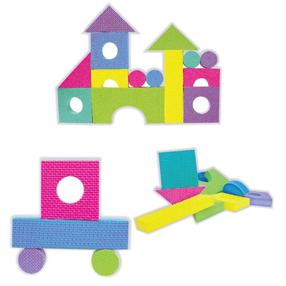 Set raznibojnih oblika za igru, od meke EVA pene, sadrži 96 elemenata. Gradivni blokovi za igru izuzetno su korisni deci. Pomažu ukupnom razvoju, podstičući njihovu maštu i kreativnost kroz stvoranje niza različitih struktura pomoću raznobojnih oblika koj