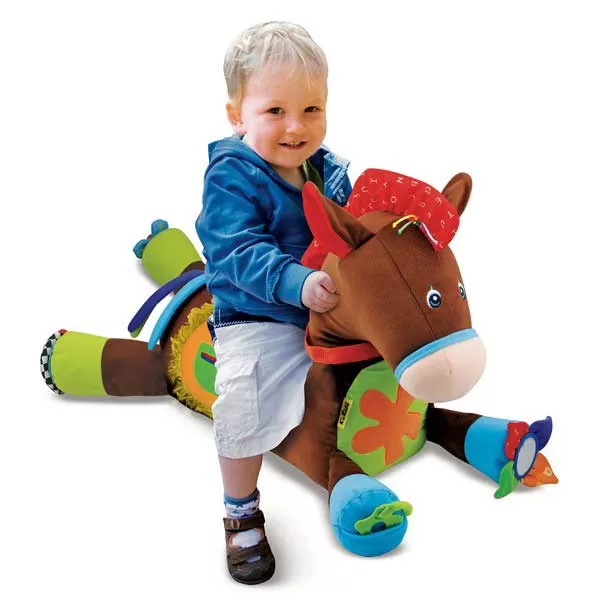 Centar za igru sa puno aktivnosti: zveckanje, skvičanje, glodalica za zubiće, različite teksture, oblici, boje, ogledalce, dodirni i oseti, uzjaši i poslušaj kako njišti...