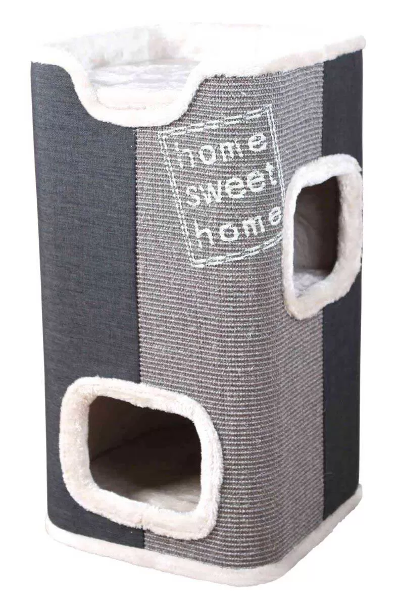 Grebalica za mačke Jorge Trixie je u obliku kule sa 3 nivoa. Unutrašnjost i vrh su obloženi plišom, a spolja je kombinacija tekstila i sisala. odlična je da maca oštri nokte, leži i osmatra ili se osami.