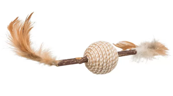 Štap od matatabi drveta (Actinidia polygama) koje privlači mačke i dobro je za njihovu dentalnu higijenu. Tu su i perje i loptica od akrila i lana. Dužina 20cm.
