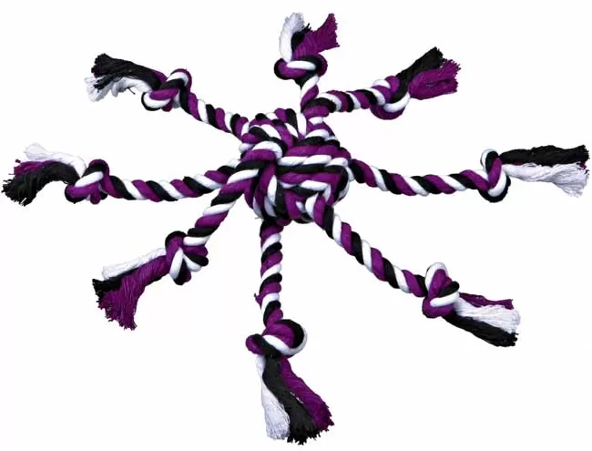 Igračka za pse u obliku lopte sa kanapima, izrađena od pamuka.