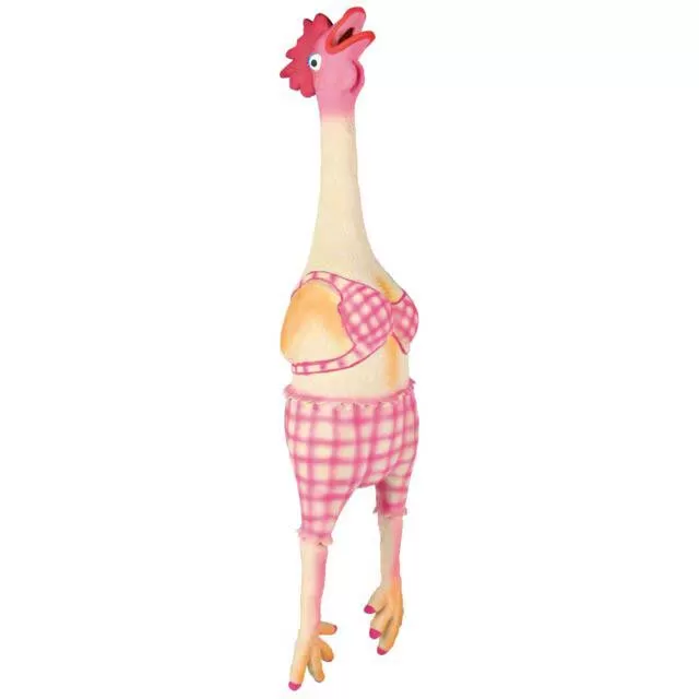 Trixie Igračka za psa Kokoška u bikiniju 48cm ima zvuk, napravljena je od lateksa i punjena. Pas će je voleti jer podstiče radoznalost, zadovoljava prirodan instinkt za plenom, idealna je za žvakanje.